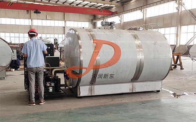 技术赋能:新东机械冷藏罐的核心竞争力作为国内领先的乳品制冷设备制造商,新东机械此次出口的9GRW系列冷藏罐凭借多项创新技术赢得肯尼亚客户青睐。据公司技术负责人介绍,该系列冷藏罐采用全封闭卧式设计,配备SUS304-2B不锈钢内胆及聚氨酯发泡保温层,可在24小时内将温度波动控制在±1.5℃以内,完美适配鲜牛奶从35℃降至4℃的安全储存需求。其搭载的美国谷轮涡旋式压缩机与智能双区蒸发板技术,不仅实现快速制冷(降温时间≤2.5小时),还通过优化传热效率有效防止脂肪分离,保障乳品品质。