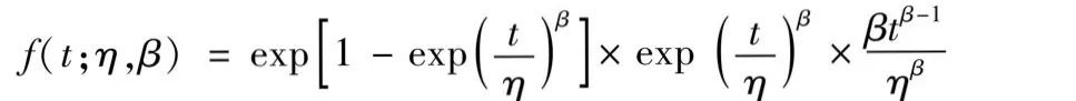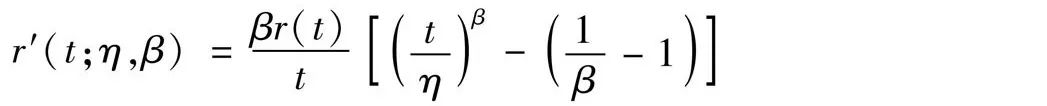 这里,故障率函数r(t)可以看作两个函数r1(t; η, β)和r2(t; η, β)的乘积。其中,当β<1时,r1为减函数,而r2则总是增函数。